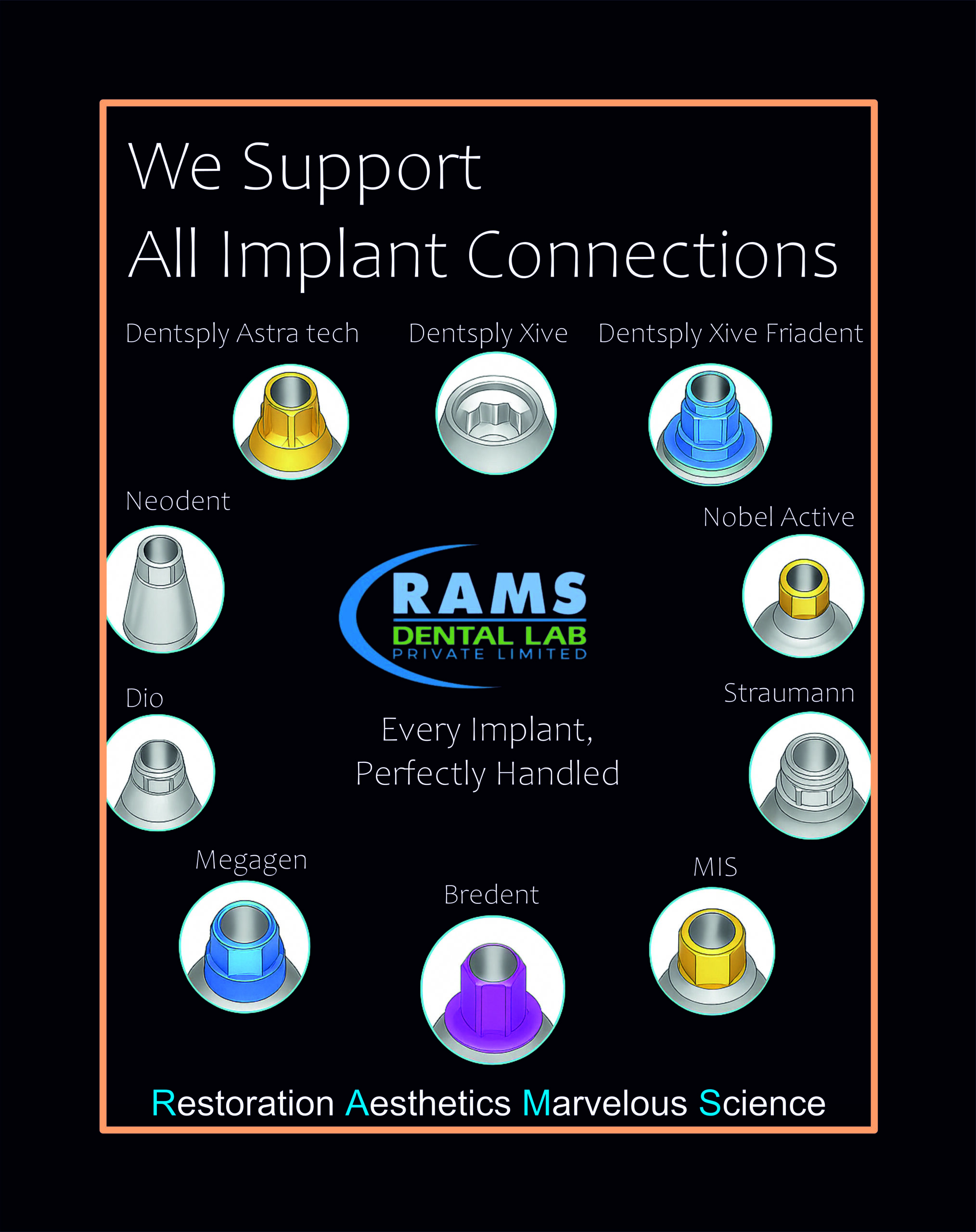 We value every doctor’s trust, treating each relationship with care and importance. By combining the expertise of our Director and Technical Head Ramachandran (Ram) with advanced digital dental technology, we ensure that every product—whether Zirconia Crowns & Bridges, PFM Crowns & Bridges, or Single Unit Implant Prosthetics to Implant Full Mouth Prosthetics, Immediate load Hybrid Prosthetics, Hybrid Frame Prosthetics, I-Bar, Malo Bridge frame, Complete Dentures, Removable Partial Denture (RPD), Flexible Removable Partial Denture (Flexible RPD), Cast Partial Denture (CPD), Ortho Aligners, Night Guards, Retainers, Precision Attachments, Bar & Ball etc… —is delivered within the best possible time frame at the most affordable price.
